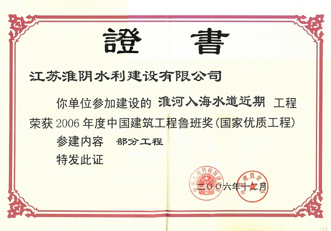 2006年度獲“中國建筑工程魯班獎”;2007年獲“中國水利工程優(yōu)質(zhì)(大禹)獎”;2009年獲“新中國成立六十周年百項經(jīng)典暨精品工程”獎。